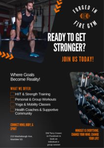 Forged in Fire is your physical fitness family here to support you through transforming not only your body but your mind. We are the temple of the Holy Spirit and so we will teach you how to become a better version of yourself, giving you the tools you need to succeed. Mind, body, and spirit connect as we take care of our bodies through nutrition, fitness, community, and God. You can do hard things! We are here for you!